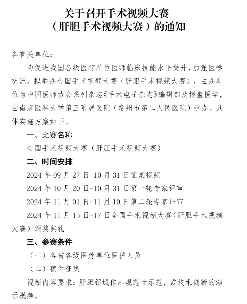 关于召开手术视频大赛 (肝胆手术视频大赛)的通知